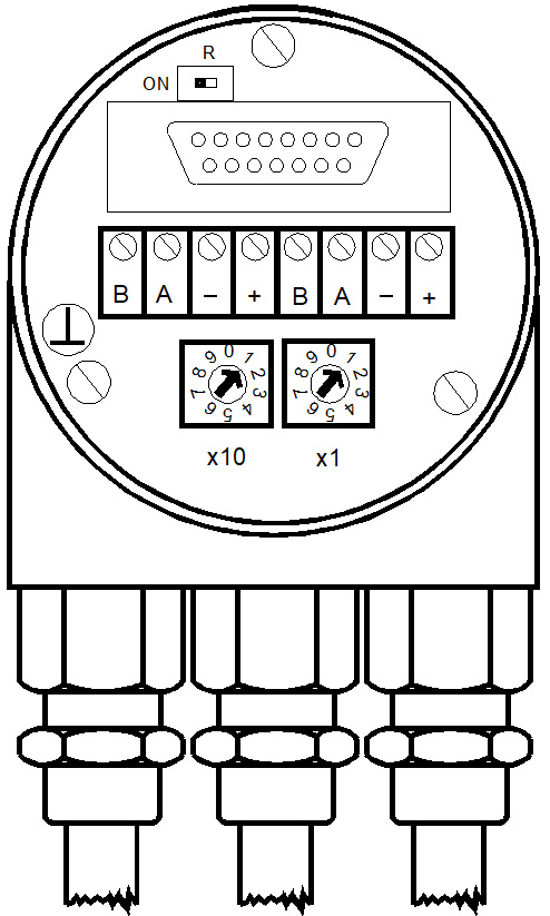 Profibus-DP裝置地址設(shè)置由連接帽中用戶界面友好的旋轉(zhuǎn)開(kāi)關(guān)完成。 允許地址在1至99之間, 僅允許使用一次。 安裝時(shí)卸下兩個(gè)螺帽即可打開(kāi)連接帽。 |